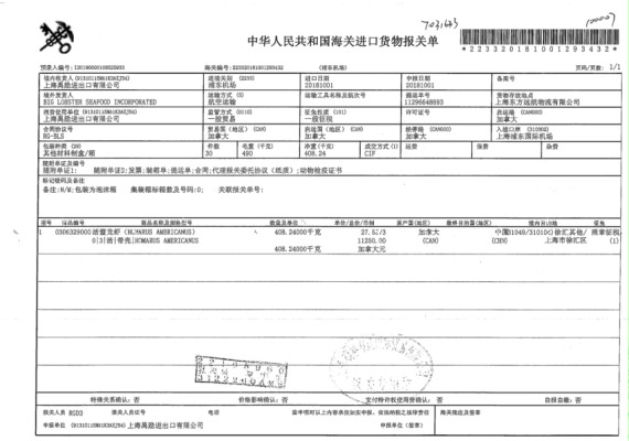 活虾进口清关资料和报关单案例,浦东机场清关代理