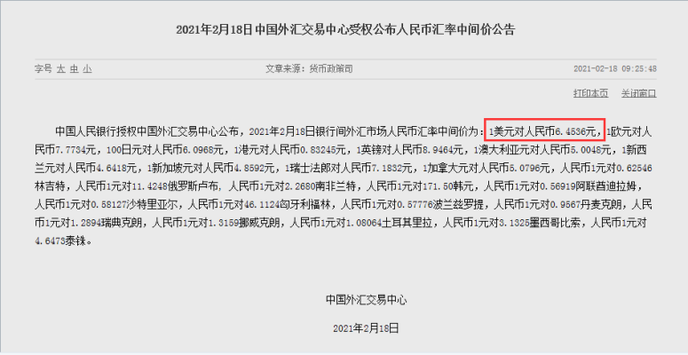 2021年3月29日,进口报关货物1万美元,折算成人民币的汇率就按照按2021年2月的第3个星期三2月17日计算,因为2月17日是法定节假日,所以按照2月18日中国人民银行公布的外币对人民币基准汇率。